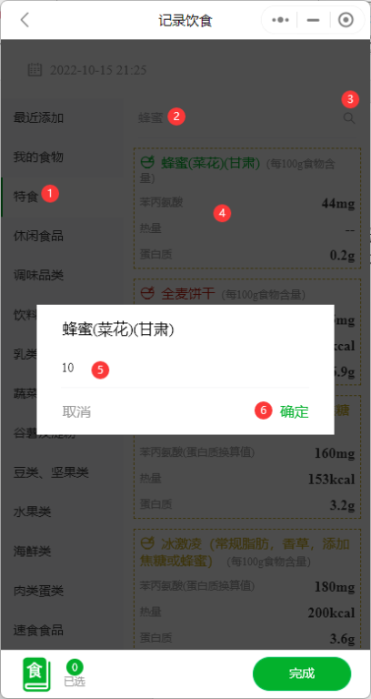 4、重复上述三个步骤,直到记录全部的本次食物