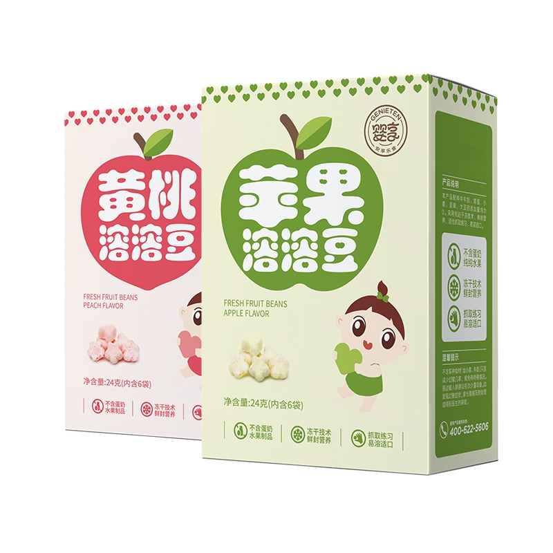 针对过敏宝宝饮食的品牌,红薯味、紫薯味薯饼;黄桃味、苹果味溶豆蛋白含量都很低,可以给宝宝做零食适量吃点。
